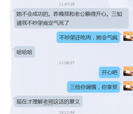 咨询师说:“还好,你没有打。小三就希望你打她、骂她,重视她的在,她会高呼:‘为了爱情,为了真爱,为了感情,我刀山敢上,火海敢闯。让验证真爱的暴风雨来得更猛烈些吧!你要真打她,那就是成全她。成全她之后,她会扮无辜、扮可怜,博你老公的同情。所以,你看那些打小三、扒小三衣服的,除了出一口气之外,没有什么效果。二者说,打人、扒人衣服是违法犯罪的事情,你是一时爽快了,但是你之后肯定会更后悔的,所以不能做。”