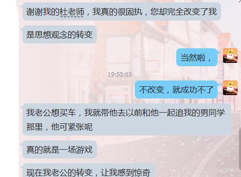 《婚姻幸福密码》教会了我许多,按照书中的方法,我开始尝试改变自己,改变与老公的相处模式,这种方式的效果立竿见影,没等我主动开口,老公就向我坦白了他所做的一切,我原谅了他。我们的青春不再了,但是我们的婚姻依旧幸福圆满。