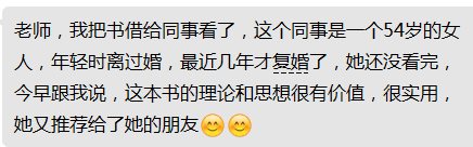 照着书中咨询师所说的处理方法,步步为营,层层递进。转眼间,三个月过去了,如今老公再也不会找那些蹩脚的借口往外厮混,我那个幸福美满的婚姻又重回来了。我由衷感谢这本《婚姻幸福密码》。