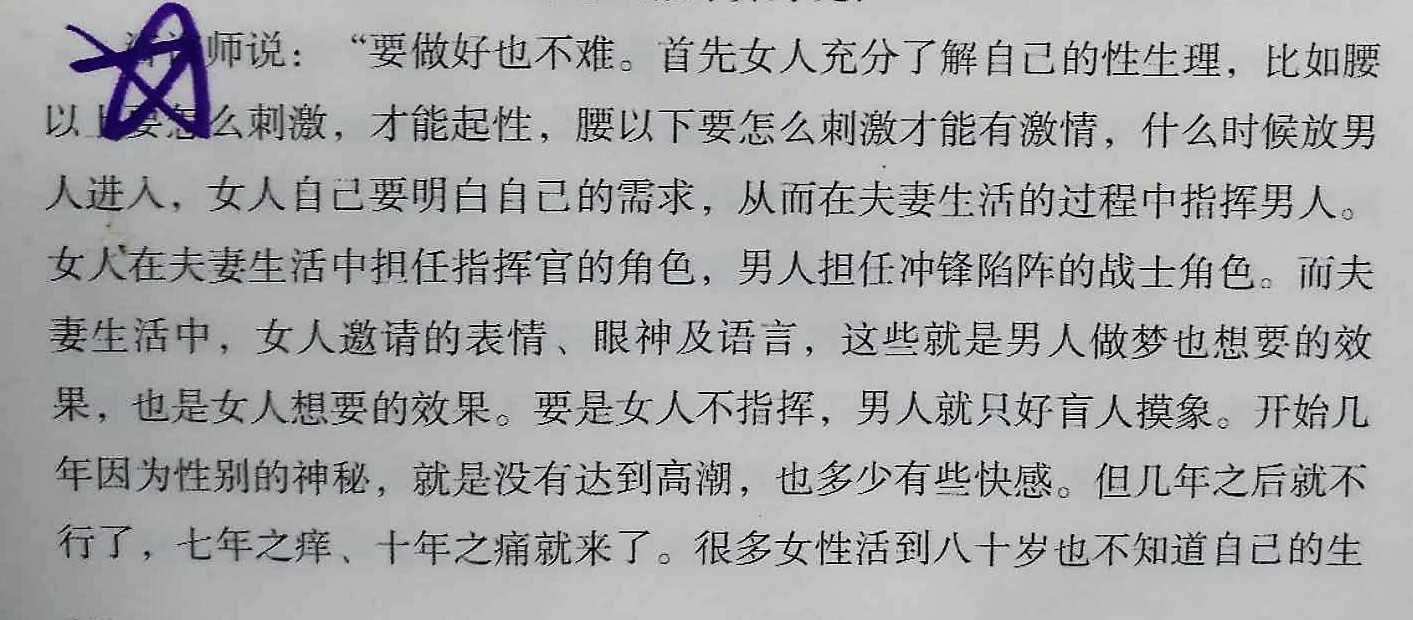 女人在夫妻生活中担任指挥官的角色,男人担任冲锋陷阵的战土角色。而夫妻生活中,女人邀请的表情、眼神及语言,这些就是男人做梦也想要的效果,也是女人想要的效果。要是女人不指挥,男人就只好盲人摸象。开始几年因为性别的神秘,就是没有达到高潮,也多少有些快感。但几年之后就不行了,七年之痒、十年之痛就来了。很多女性活到八十岁也不知道自己的生理需求。打个比方、你现在站在我面前,你惹我了,我打你一下,我打痛你没有,实际上我不知道,你痛不痛或者痛的程度是从你的表情、眼神、语言中表现出来的。夫妻生活也是这样。